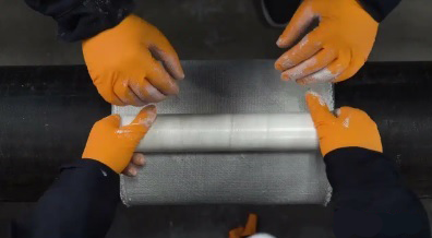 This field-mixed novolac epoxy resin and advanced-weave fiberglass combine to provide high-strength reinforcing composite layers, demonstrated to build back wall thickness and corresponding strength.